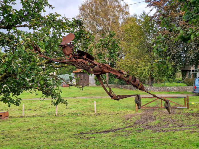 „Peter Pan“ fliegt davon. Dieses Flugobjekt zwischen Bäumen in Höhe des Buswartehäuschens in Bissee ist ein Gemeinschaftswerk der Künstler Bjarne Joecks, Lars Wolf, Tygge Mumm und Tom Tuschy.