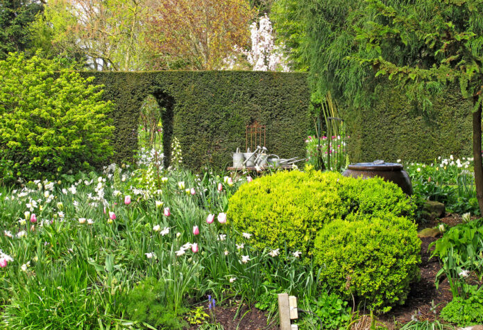 Der Durchgang in der Eibenhecke gibt einen kleinen Ausschnitt des nächsten Gartenzimmers frei. Foto: Karin Stern