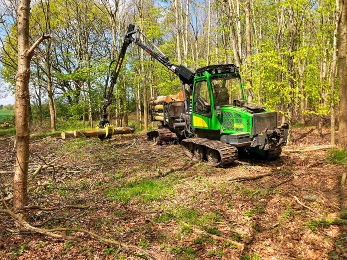 Als ein sehr gutes Verfahren hat sich die Durchforstung mit einer Kombinationsmaschine erwiesen. Ihr Motor hat eine Leistung von 55 kW. Die Maschine wiegt 5,7 t – ist also vergleichsweise leicht und wird als Kombinat