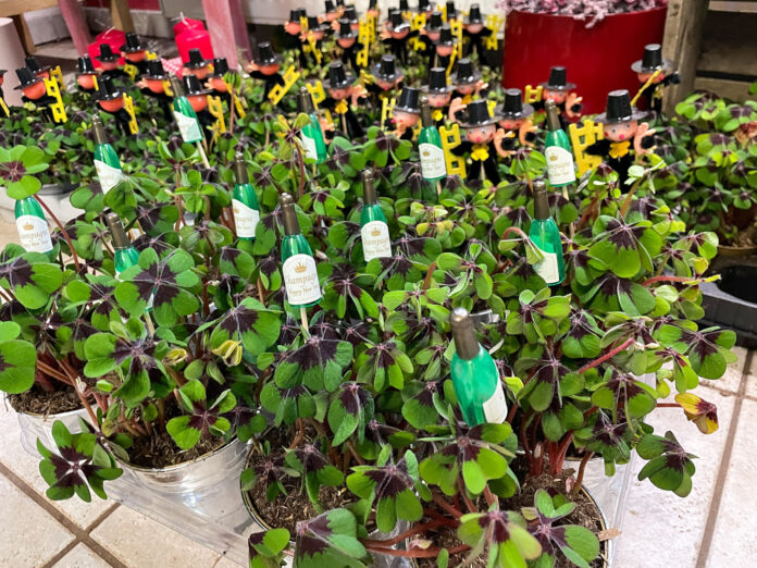 Im Herbst belegen die Glückskleepflanzen in drei Topfgrößen den größten Teil der Fläche in der Gärtnerei Bull in Gönnebek. Kultiviert wird die Sorte ‚Iron Cross‘, die sich durch ein markantes braun-rotes Herz in der Mitte des grünen Kleeblattes auszeichnet. In der Gärtnerei von Hartwig und Ulrike Bull wachsen in 25.000 m² Gewächshäusern und auf 6 ha Freilandbeeten eine große Vielzahl von Saisonpflanzen. Derzeit stehen neben dem Glücksklee attraktive Frühlingstrios in den Gewächshäusern, die mit Tausendschön, einer Primel und einem zierlichen Gras im zeitigen Frühjahr verkauft werden. Neben einem breiten Programm an Sommerblumen zeichnet sich die Gärtnerei Bull durch eigene Züchtungen bei Sonnenhut (Echinacea), Staudensonnenblumen (Helianthus) und Sonnenhüten (Rudbeckia) aus, die nicht nur auf den eigenen 6 ha wachsen, sondern auch als Jungpflanzen weltweit vertrieben werden.