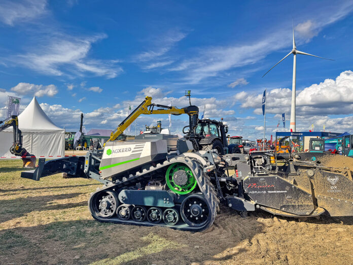Zum Thema Robotik im Forst war eine Agxeed-Raupe mit angebauter Streifenfräse zu sehen. Foto: Landpixel