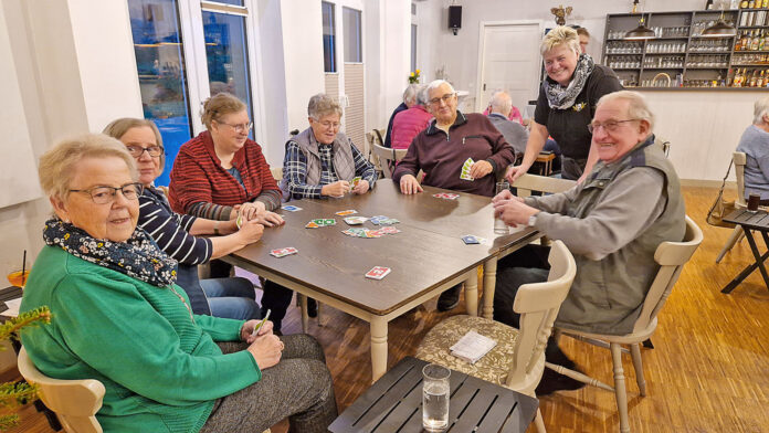 Jeden letzten Donnerstag im Monat findet im Dorfhaus „Ole School“ ein Klönschnacknachmittag statt, bei dem Kirsten Clausen (2. v. r.) dafür sorgt, dass es allen gut geht und sich alle wohlfühlen. Foto: Iris Jaeger
