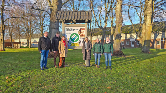 In einem ausführlichen Rundgang präsentierten Hannah Straky die bundesweit größte Baulehrschau sowie das bundesweit erste AgriSkills Lab, einen Trainingsraum, der es ermöglicht, tiergerechte und sichere Handgriffe rund um Rind und Schwein an modernen Simulatoren zu trainieren. Dr. Sophie Diers stellte die umgebaute Sauenhaltung vor und zeigte auf, wie Futterkamp Betriebe bei der Umsetzung zukunftsfähiger Haltungsverfahren begleitet. Abschließend stellte Dr. Imme Dittrich die Rinderhaltung vor, die praxisnahe Versuche und Beratungsimpulse für Milchviehbetriebe liefert.