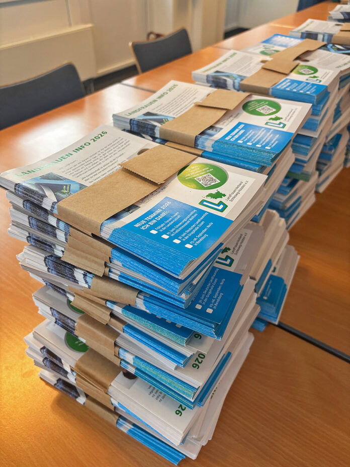 Das Infoblatt erscheint erneut im handlichen DIN-A5-Format, das sich im vergangenen Jahr hervorragend bewährt hat. Wieder hatten die Mitarbeiterinnen der Geschäftsstelle alle Hände voll zu tun, denn rund 16.000 Exemplare wurden in den vergangenen Tagen eingetütet und an die Ortsvereine im ganzen Land verschickt. Auf dem Infoblatt finden sich wieder stark nachgefragte und bewährte Qualifizierungen wie die Digitale Patin, Kräuterkunde oder unsere Baff-Kurse. Außerdem bietet der LandFrauenverband im kommenden Jahr eine neue Qualifizierung zur Demokratie-Lotsin in Kooperation mit den regionalen Beratungsteams gegen Rechtsextremismus in Schleswig-Holstein an. Zu den neuen Seminaren im Infoblatt 2026 gehören unter anderem die „Finanzielle Absicherung für Frauen“ in Zusammenarbeit mit der Verbraucherzentrale oder „Sag Ja zu Dir“, ein Seminar zur Stärkung des Selbstbewusstseins und der inneren Kraft.
