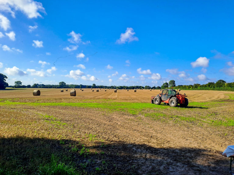 4. Wenn möglich sollte in der Fronthydraulik des Schleppers ein Blech in einem Winkel von zirka 45° montiert werden, welches die Rapspflanzen besser unter dem Schlepper hindurchgleiten lässt. Wenn dann noch unter dem Schlepper eine stabile Plane montiert wird, welche natürlich nicht in Kontakt mit heißen Motorteilen kommen darf, werden die Verluste auf ein Minimum reduziert. Einer zweiten Durchfahrt zu einem späteren Zeitpunkt für eine getrennte Applikation von Fungiziden und Insektiziden steht mit dieser optimierten Technik dann auch nichts mehr im Wege.