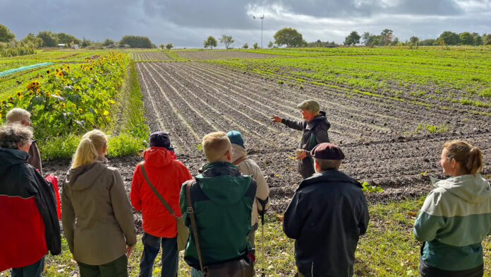 Am 6. Oktober fand auf dem Biohof Thees in Mildstedt bei Husum ein Feldtag im Rahmen des EIP-Projekts „Spitzwegerich zur Lachgasreduktion“ statt. Zahlreiche Interessierte aus Landwirtschaft und Verwaltung, aber auch Verbraucherinnen und Verbraucher aus der Region nutzten die Gelegenheit, sich über aktuelle Ansätze zur Minderung von Lachgasemissionen im Gemüsebau zu informieren.