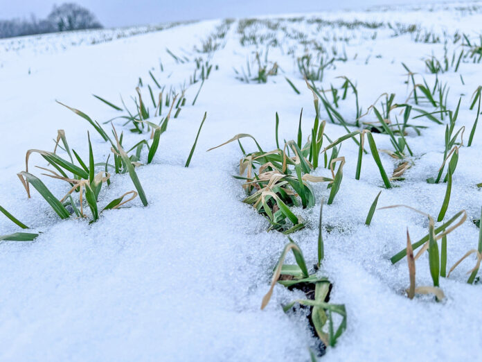 Derzeit steht der Vegetationsstart bevor, und die ersten Maßnahmen wie die Andüngung der Bestände sollen stattfinden. Aktuell sind die Böden aber oftmals schneebedeckt, gefroren oder nicht befahrbar, sodass noch einige Tage trockene, milde Witterung nötig sind, um starten zu können. Dabei wird sich dann zeigen, wie die Bestände aus dem Winter kommen und ob Schäden aufgetreten sind. Überwiegend hat die Schneedecke schützend gegen den Frost und scharfen Ostwind gewirkt. Auf frei gewehten Teilflächen und Kuppen könnten aber Blattschäden aufgetreten sein. Während Blattverluste kein schwerwiegendes Problem darstellen, können jedoch offenliegende Vegetationskegel bei weit entwickeltem Raps oder bereits nässegestresste Getreidepflanzen unter Umständen stärker geschädigt sein. Daher sollten eigene Flächen genau beurteilt werden, inwiefern eine Umbruchentscheidung, auch von Teilflächen, in Betracht gezogen werden muss.