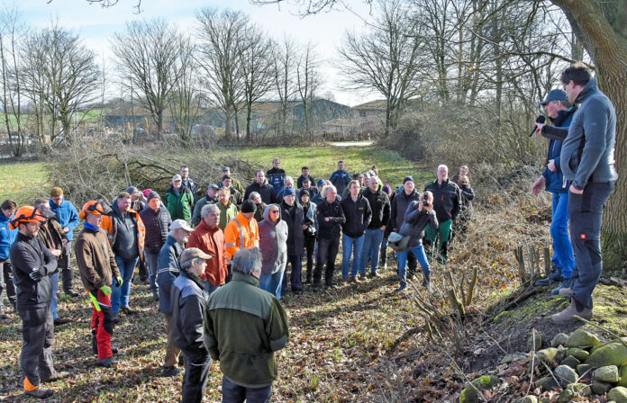 Zum Techniktreffen des „Knickwert“-Projektes kamen rund 60 Interessierte nach Holzbunge. Foto: Naturpark Hüttener Berge