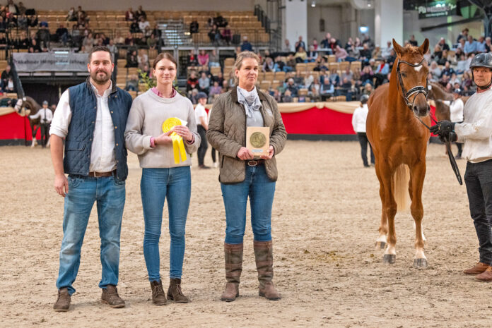 Matthis Treptau (v. li.), Isa Lindemann-Treptau und Corinna Knaack-Lindemann freuten sich 2023 über die Körung ihres zweiten Trakehner Hengstes, Camelot Bahrain. Foto: Sigrun Wiecha